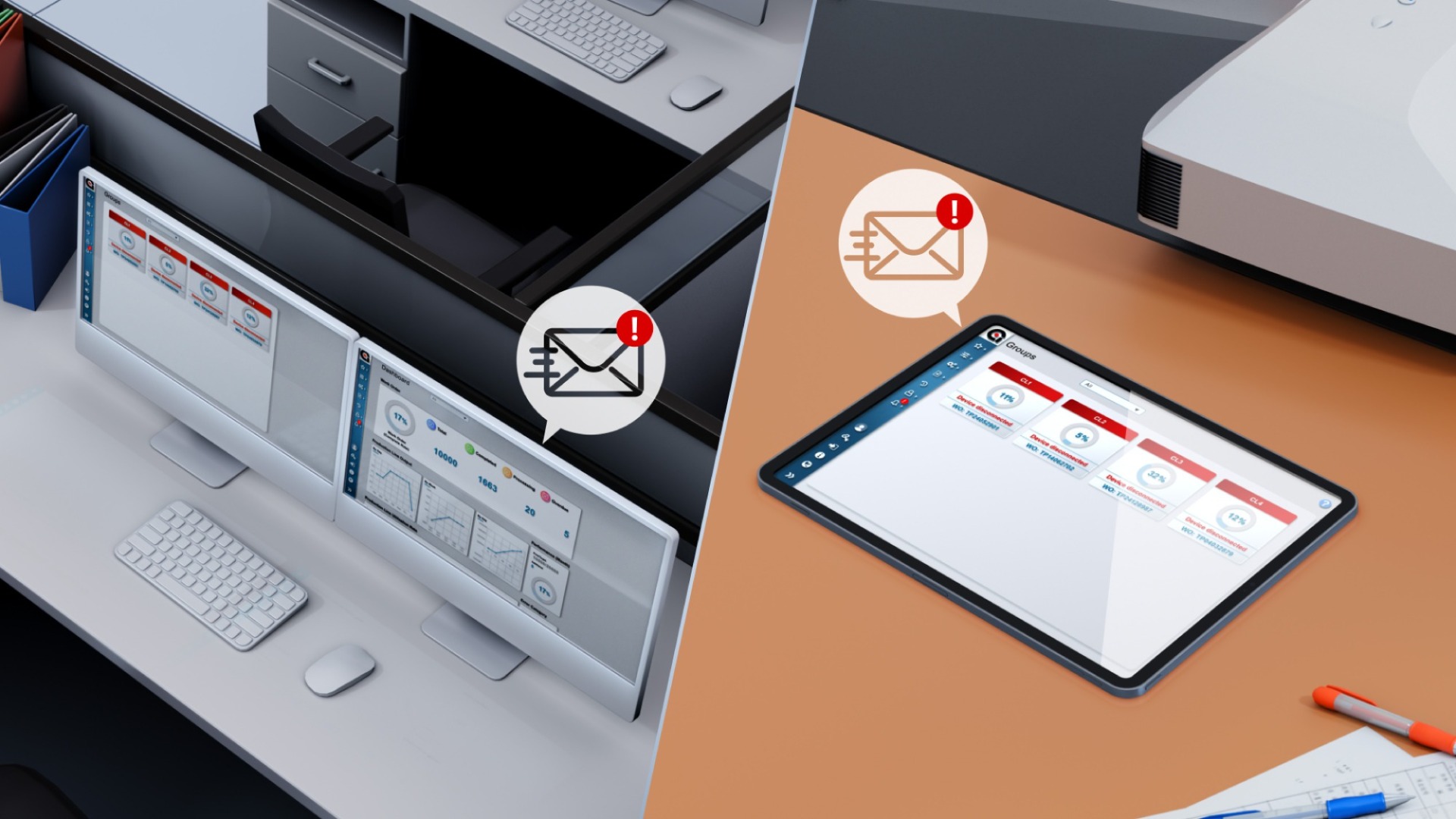 Automaticky odesílá e‑mailová upozornění při chybách, výpadcích, zablokování tiskové úlohy nebo při nízké hladině inkoustu či toneru. Díky tomu zareagujete ve správný okamžik.